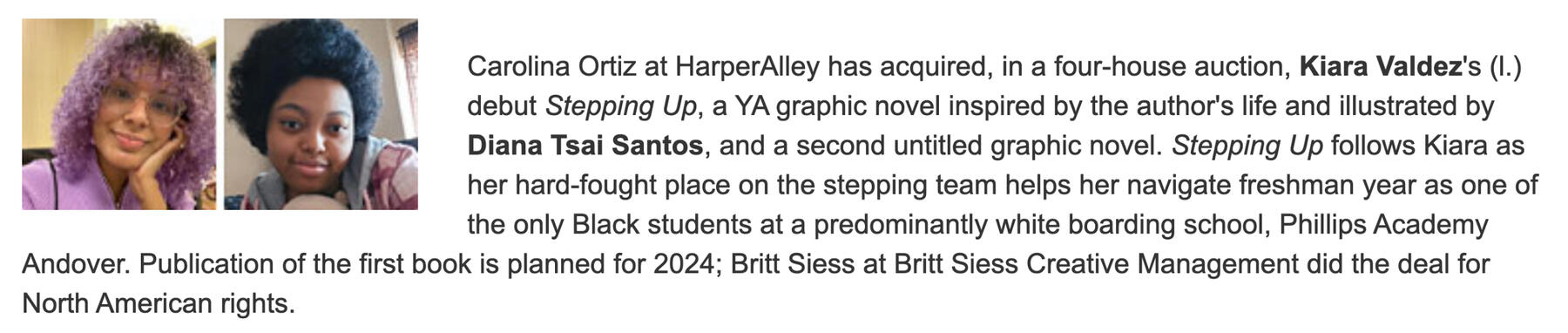 Kiara Valdez is an Afro-Dominican writer and graphic novel editor from New York City (shout out to Washington Heights). She graduated from Williams College with a double major in English Literature and Japanese, and spends her free time reading, writing, and enjoying a long list of other hobbies she can't keep up with. She is currently the special projects editor at BOOM! Studios, where she leads on all creative aspects for BOOM!'s special edition comics, merch, and anything related to direct-to-consumer Kickstarter campaigns.Kiara has written various IP storybooks, activity books, and picture books for Scholastic. She is currently working on writing original graphic novels and picture books, and is also interested in writing more storybooks and shorter kids books.She is represented by Britt Siess.Miscellaneous: Virgo | ISFJ | Color: Lilac | Cat & Snake Parent